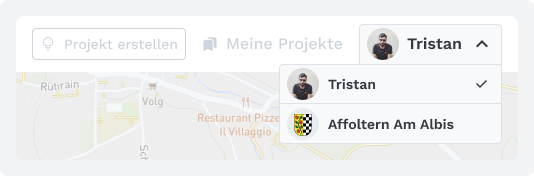 Nachdem ein User mit einer Gemeinde verbunden wurde, erscheint in der Navigation ein Dropdown, welches es ermöglicht im Namen der Gemeinde Änderungen vorzunehmen.