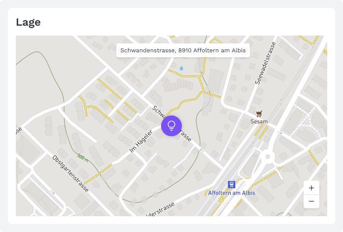 Jedes Projekt hat eine geografische Position. Beim Erfassen eines Projektes geschieht dies entweder durch das Suchen nach einer Adresse oder durch das Platzieren eines Markers auf der Karte. Die genaue Adresse wird dann per API, von z.B. Mapbox, ermittelt.