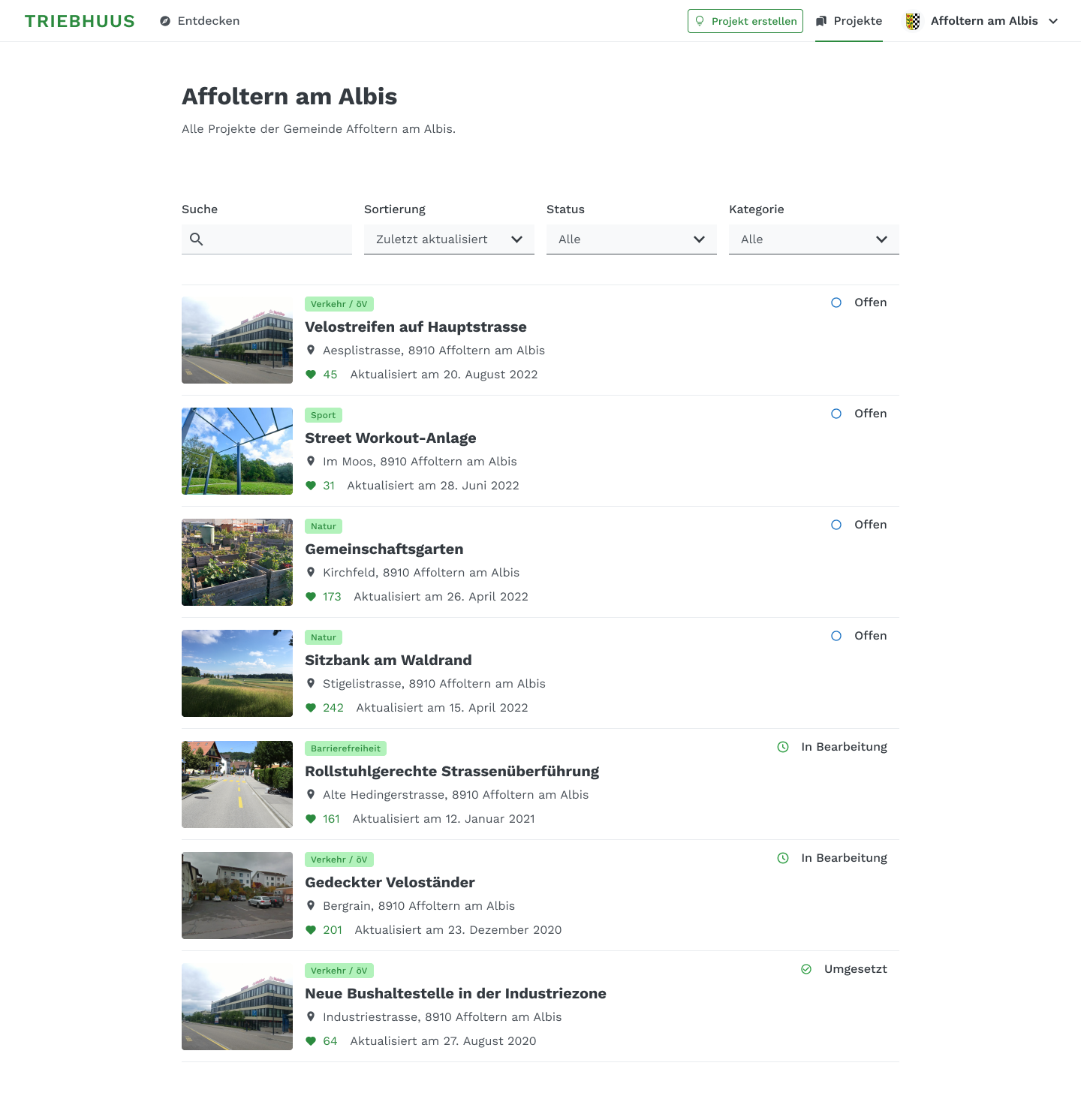 Das «Triebhuus» ist eine webbasierte Plattform, die rund um geografisch verortete Projekte aufgebaut ist.